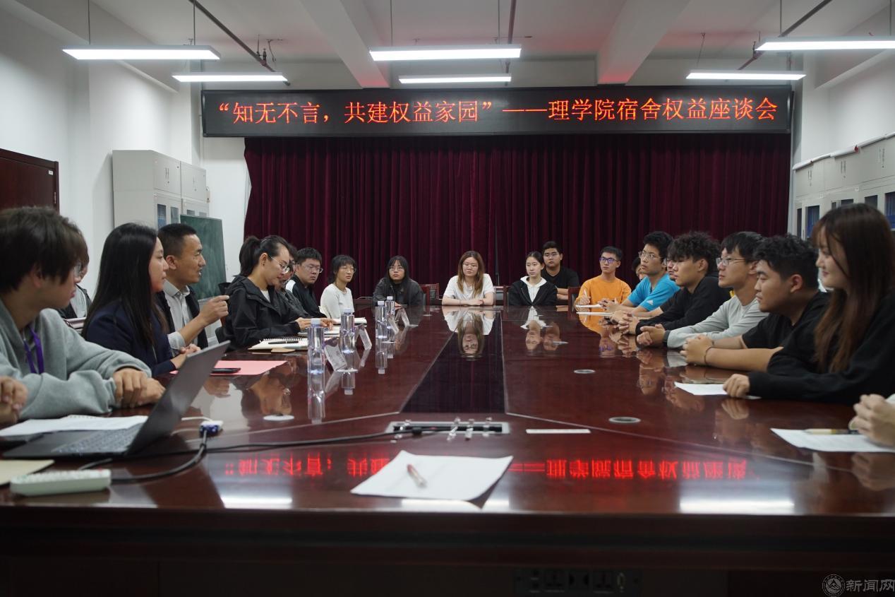 为深化 “以生为本” 的育人理念,打通宿舍管理服务的 “最后一公里”,理学院于10月14日下午在博远楼805举办了“知无不言,共建权益家园”主题宿舍权益座谈会。座谈活动以问题为导向搭建协同沟通平台,推动宿舍管理提质增效。理学院党委副书记贺映勇、团委书记夏丹梅、辅导员熊敏、公寓管理部张雪及全体2025级本科新生宿舍长参会。