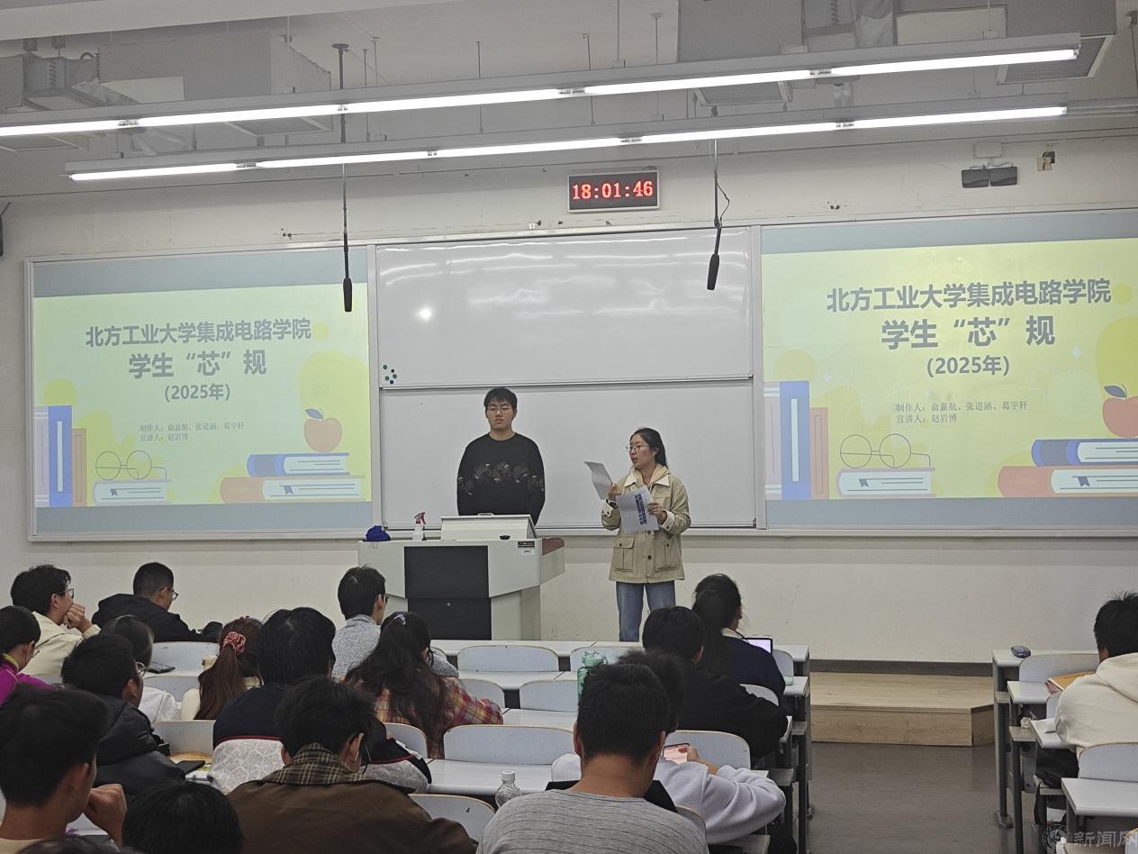 2025年发布的《beat365手机版官网集成电路学院学生“芯”规》,从六大维度为学生立下行为准则,覆盖日常纪律、品德修养、集体协作、学术诚信、专业发展与安全责任,让“怎么学、怎么行”有章可循。
