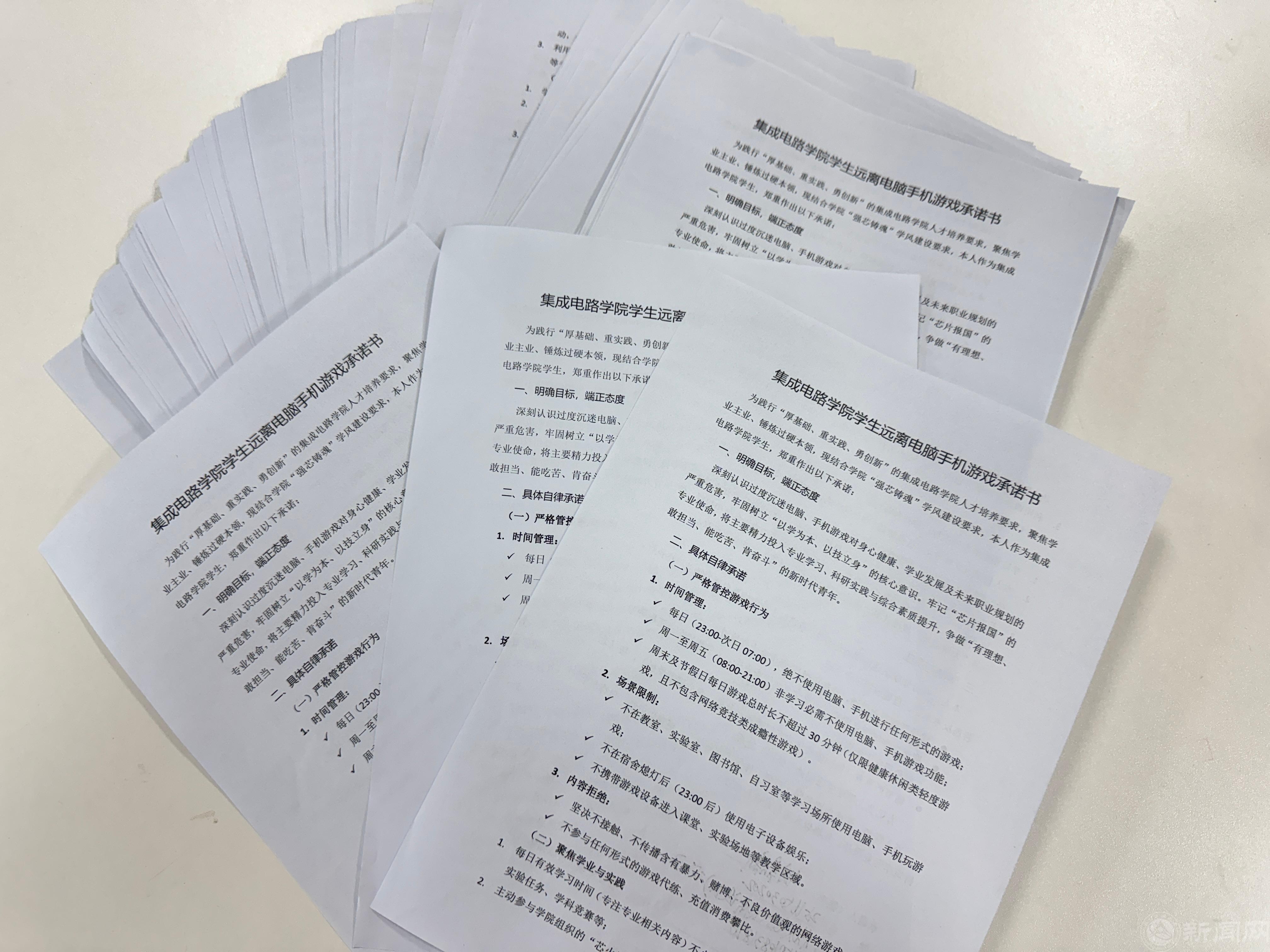 为让“芯”规要求落地生根,学院同步组织全体学生签署《集成电路学院学生远离电脑手机游戏承诺书》,以书面形式将“芯”规中的游戏管控、学业投入要求转化为学生的主动约定,形成“制度+自觉”的双重保障。