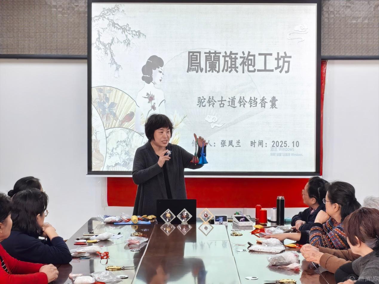 本次活动特邀市级非物质文化遗产项目京式旗袍传统制作技艺第五代传承人张凤兰老师现场教学。张凤兰老师从事非遗传承与教学工作近40年,曾主持设计2022年北京冬奥会“雪花系列盘扣”等文创产品,多次参与“一带一路”高峰论坛、北京世园会等国际文化交流活动,多项作品被选为“北京外事礼物”,2019年被评为北京市文化和旅游行业榜样人物。