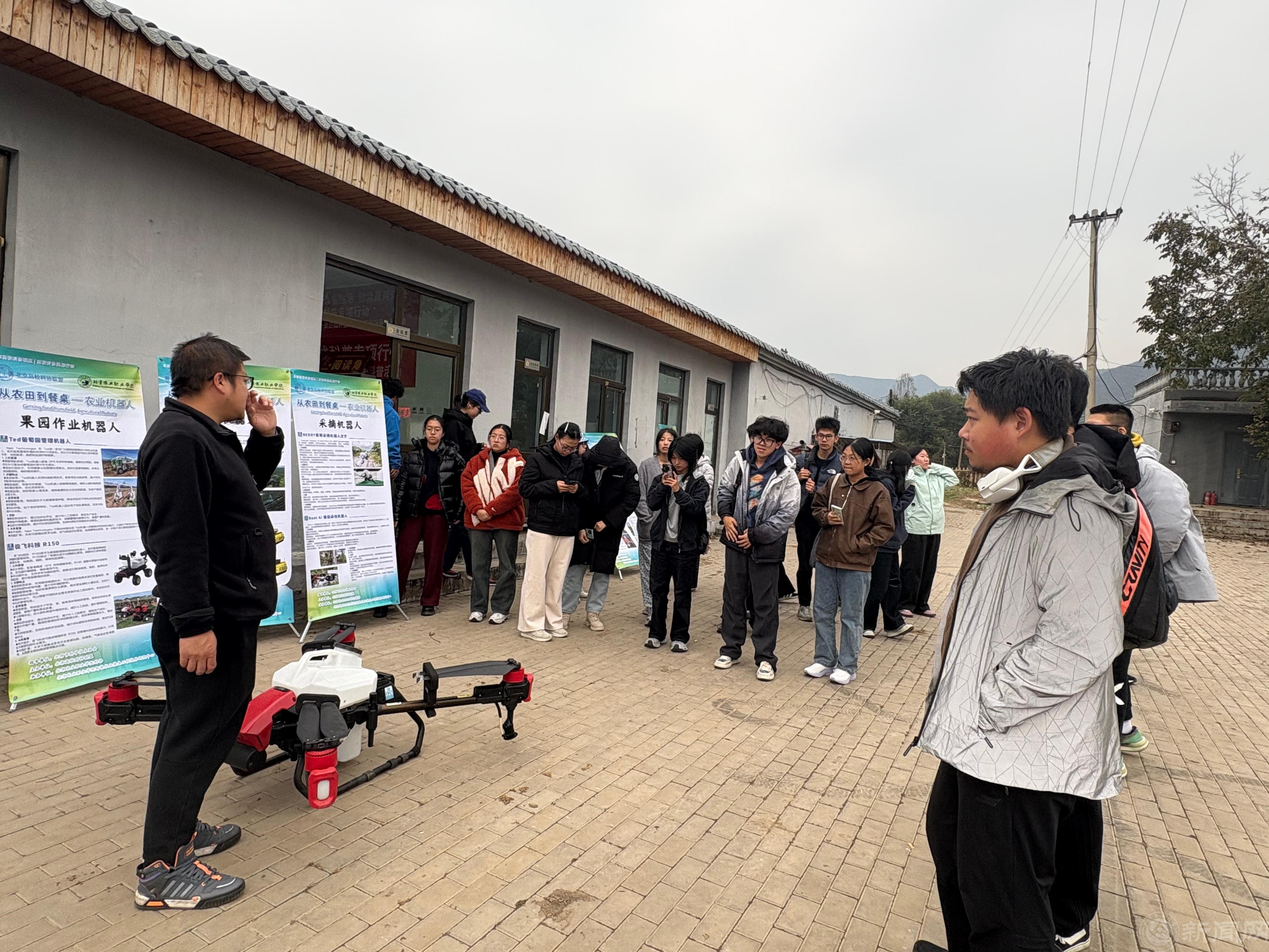 在随后的观摩环节中,同学们学习了农业无人机设备的使用。郭博士现场讲解了农业无人机如何在实际生产中提升效率、降低成本、保护环境。与传统人工喷药相比,农业无人机每小时可喷洒60亩以上,节水省药30%以上。