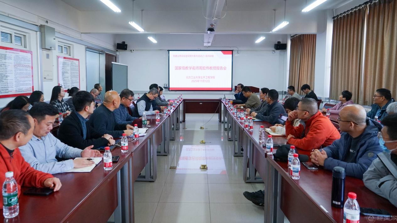 11月12日,土木工程学院在浩学楼1103会议室举办“党建业务双促进双提升系列活动”教学名师讲座。活动特邀国家级教学名师、教育部“长江学者”特聘教授、国家百千万人才工程人选、中国矿业大学(北京)周宏伟教授,以“国家级一流本科课程建设路径-以材料力学课程为例”为题作专题讲座。讲座由学院党委书记张少波主持,学院全体专任教师及教学管理人员参加。