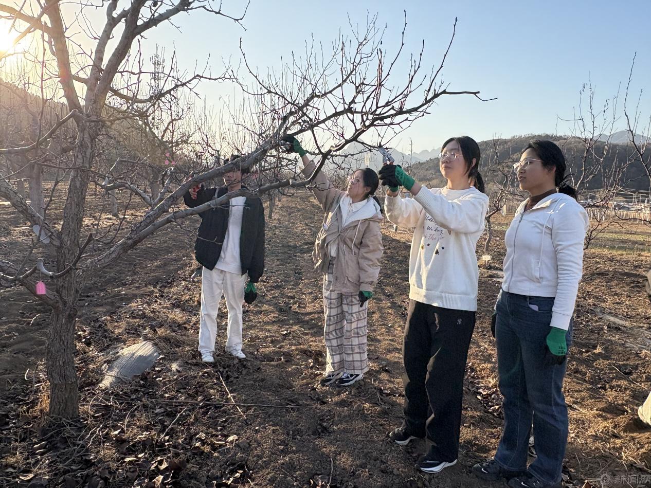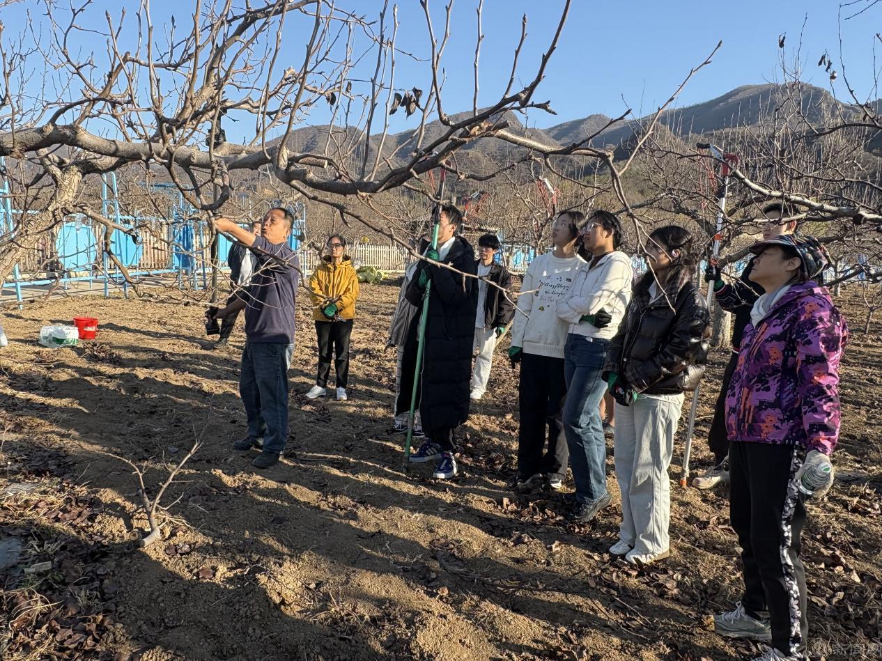 实践环节,同学们系统学习了果树修剪的精妙技艺,领悟到其“形”“产”兼顾的科学内涵。园中培育的新一代树苗采用“Y字型”栽培模式,更适合机械化作业与自动化监测,让同学们对科技赋能产业有了更具象的认知。学生们亲手执剪,于枝叶取舍间,完成了从理论到实践的关键跨越。