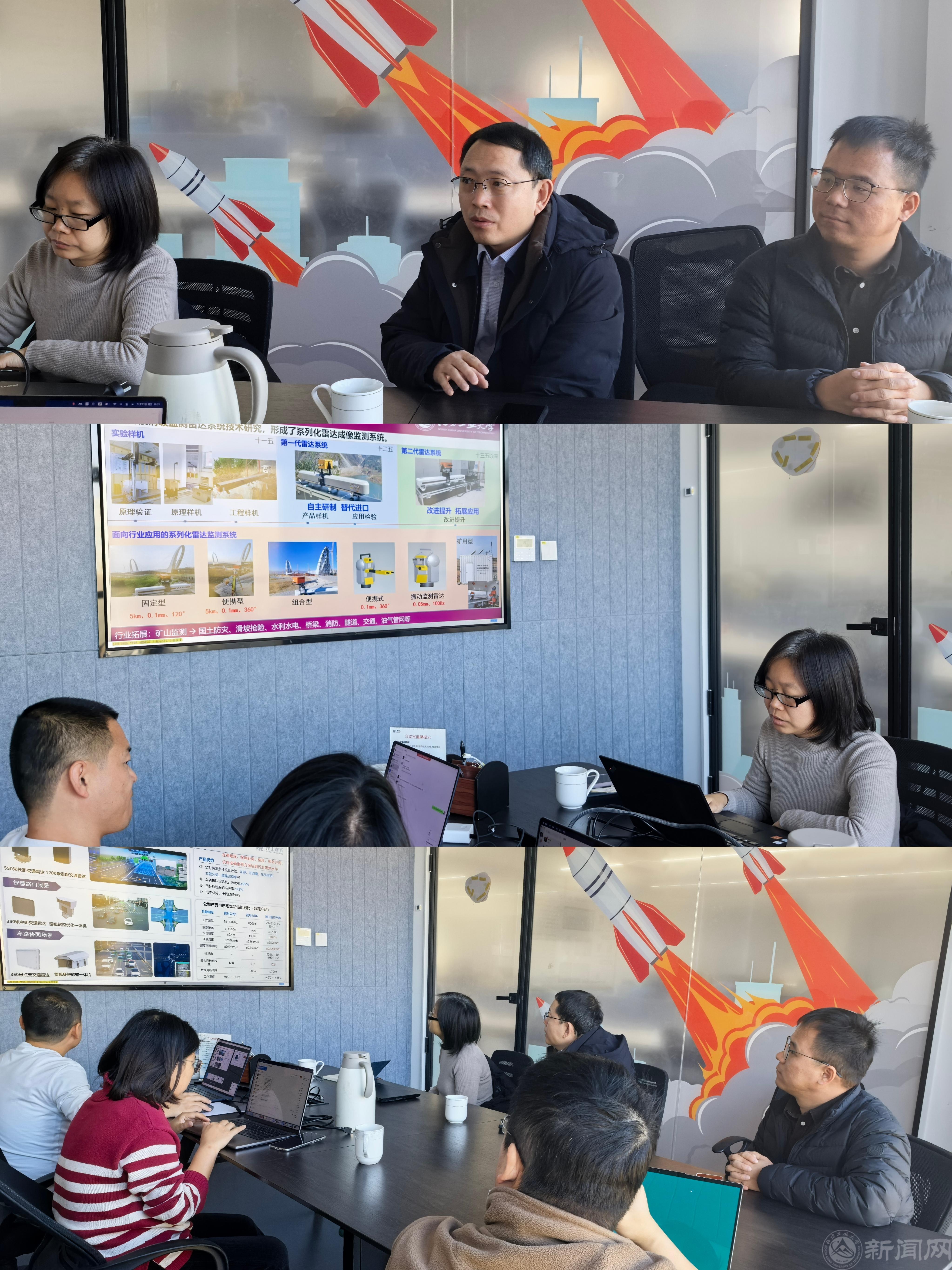 王彦平一行首先参观了睿行电子的产品展厅,重点了解应用于智慧城市、智能交通等领域的高精度雷达系统、AI 边缘计算设备,以及公司在毫米波雷达信号处理、多传感器融合算法等领域的创新成果,并就技术细节、研发流程与工程师交流,明晰产业界对 AI 技术的实际需求。