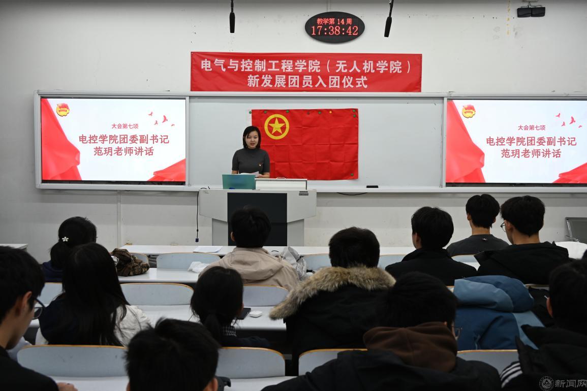 为促使新发展团员进一步明确新时代团员的责任义务,筑牢 “听党话、跟党走” 的思想根基,12月22日,电气与控制工程学院在瀚学楼0103举办2025年新发展团员入团仪式。学院团委副书记范玥、优秀团员代表杨成俊和55名新发展团员参加活动。