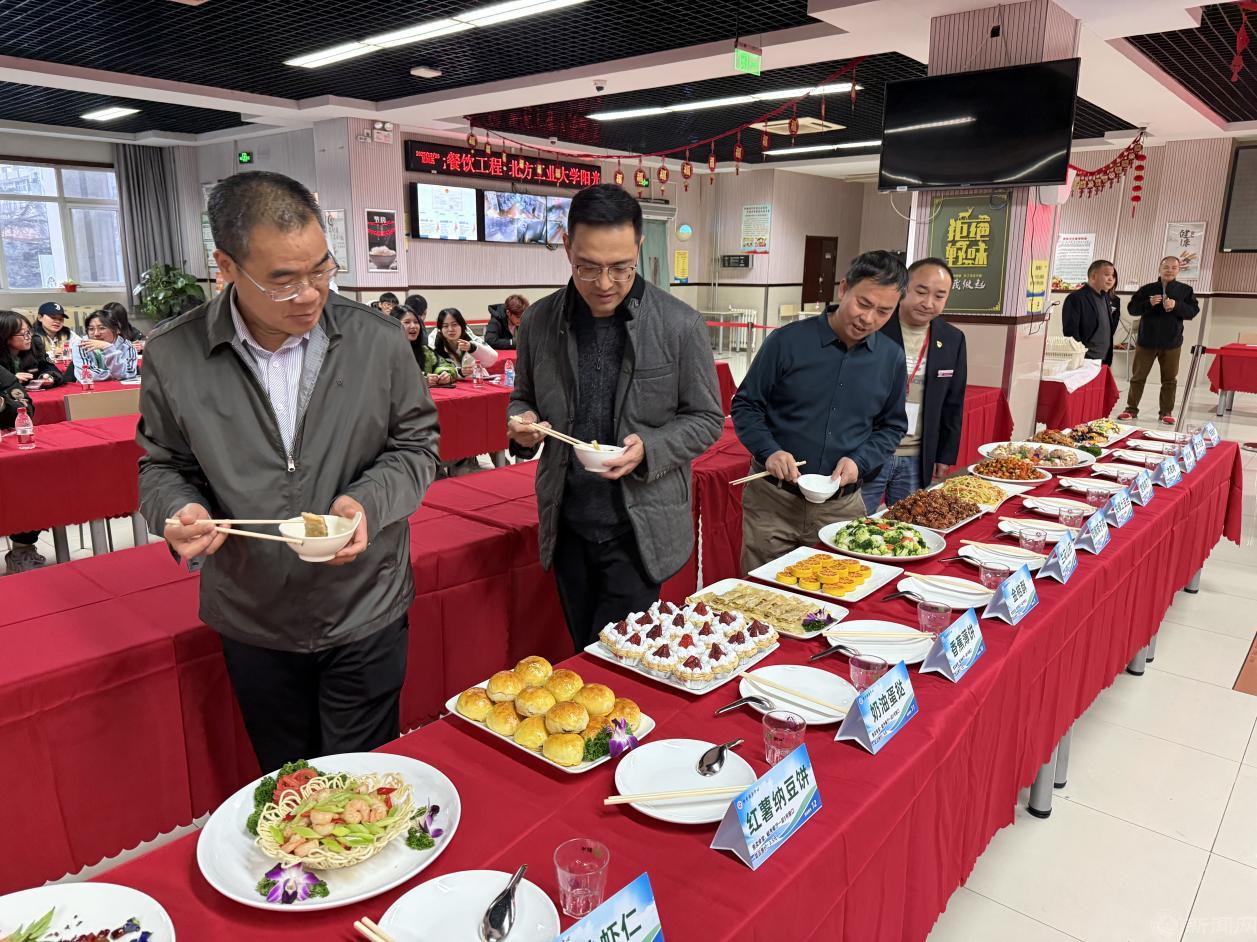 12月26日,由校工会、学生工作部(处)、校团委、后勤基建处联合主办的beat365手机版官网第二十三届饮食文化节——食堂特色菜品评选暨劳动技能比赛活动圆满成功。活动突显服务育人核心宗旨,以 “食韵飘香迎盛会,匠心筑味暖校园” 为主题,进一步丰富校园饮食文化内涵,通过劳动技能竞技与美食品鉴,推动餐饮服务水平再上新台阶。校工会常务副主席黄睿、学生工作部部长孙宗瑞,校团委书记杨超、后勤基建处处长白传栋及相关职能部门负责人出席活动。