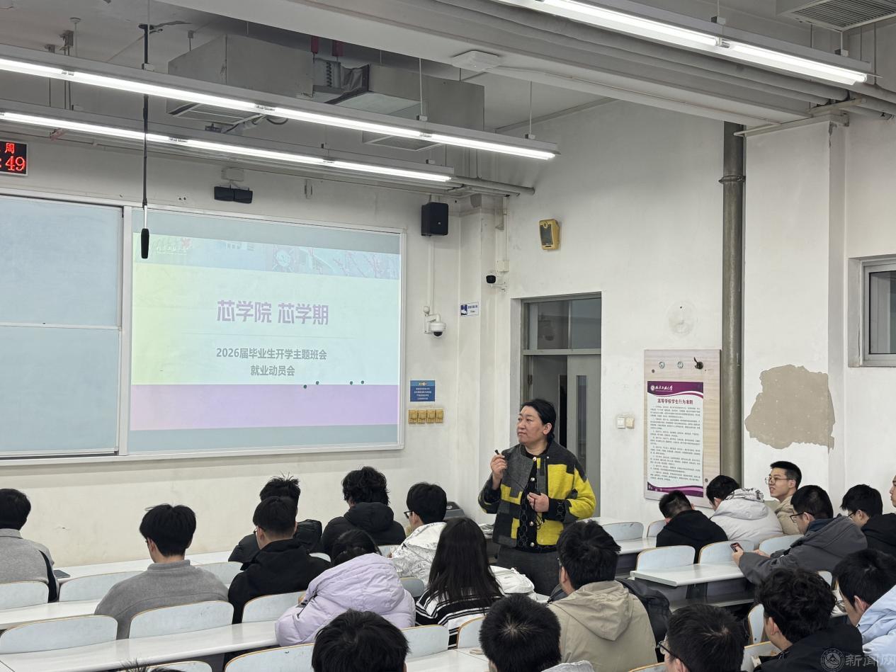 班导师鞠家欣老师和王艳蓉老师从宏观政策层面为同学们注入强心剂。他们结合2026年政府工作报告中关于“打造集成电路等新兴支柱产业”的重要部署,向同学们传达了国家对微电子人才的迫切需求与高度重视。鞠老师勉励同学们抓住“十五五”开局之年国家大力发展新质生产力的时代机遇,将个人发展融入国家战略,坚定信心,成功就业。