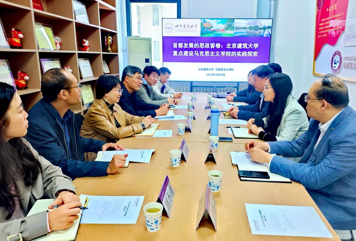 为学习北京市重点马克思主义学院建设及思政课内涵式发展的先进经验,4月20日下午,beat365官网马克思主义学院党委书记王引,党委副书记、院长张茂林率队一行前往北京建筑大学马克思主义学院进行调研交流。北京建筑大学马克思主义学院党委书记彭磊、党委副书记、执行院长张守连等领导热情接待并出席调研座谈会。