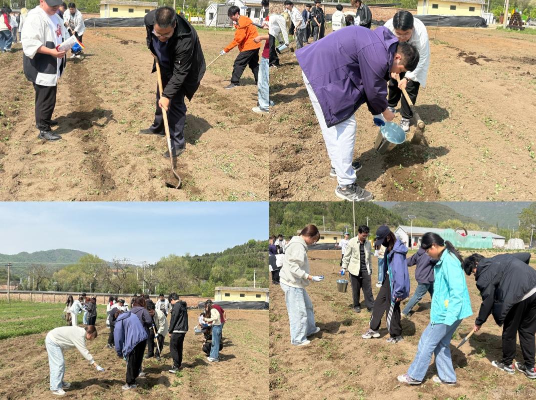 揭牌仪式结束后,28名选课学生随即开展玉米种植劳动教育实践课。在园区技术人员和带队老师的指导下,同学们分成四组,每组按照刨坑、浇水、撒种、覆土四个环节进行分工协作。同学们边学边干,配合默契,在相互协作中体会到了劳动的充实与乐趣。