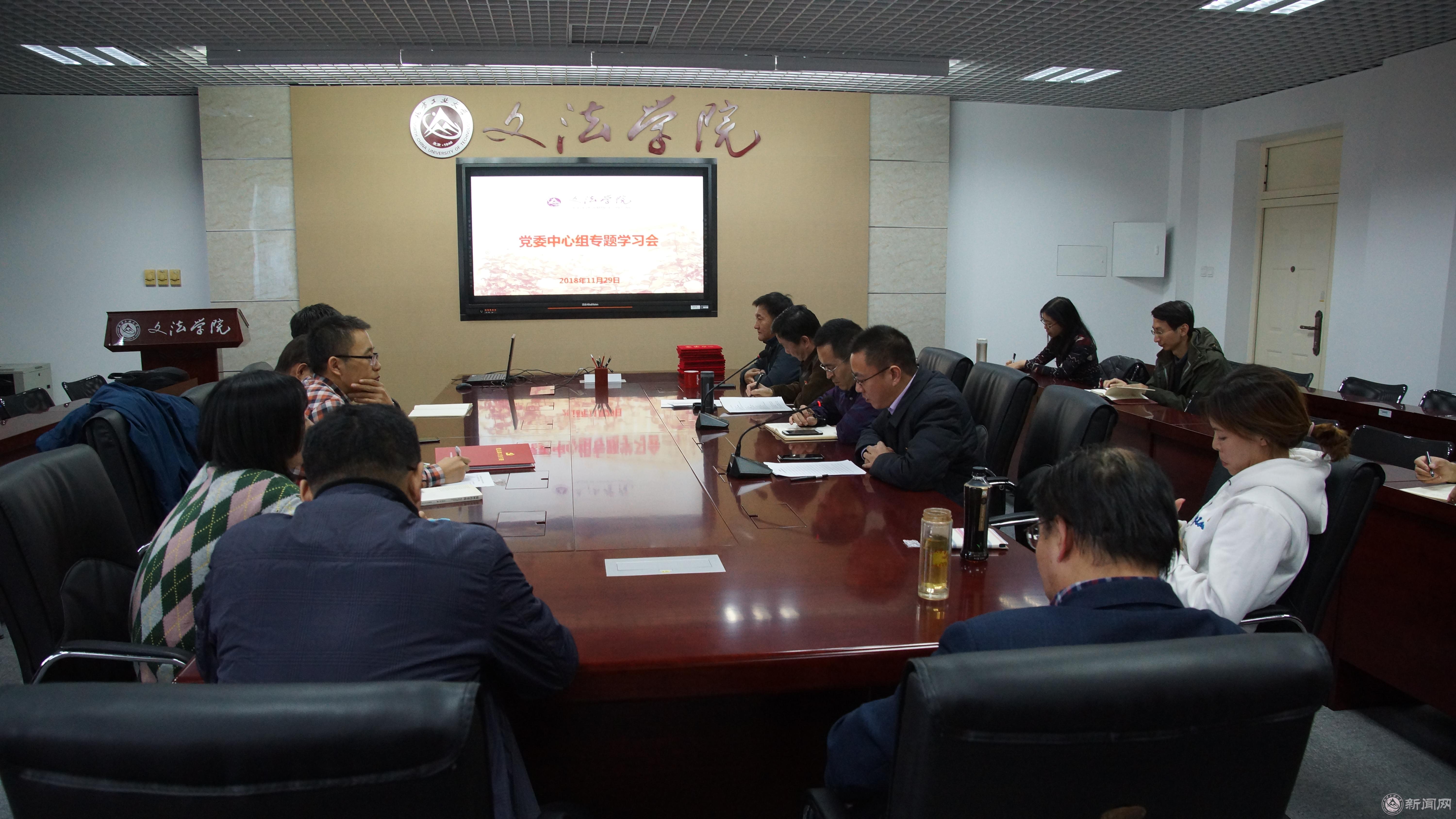 11月29日下午,文法学院党委中心组在瀚学楼710学术报告厅举行学习会,学院院长刘泽军、党委书记袁本文、副院长袁凤识、各系主任、各支部书记和辅导员参加了学习,学习会由学院党委副书记刘祥坠主持。