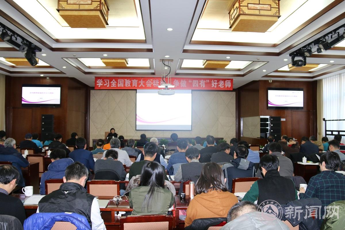 beat365官网人事处处长、教师工作部部长毛燕梅老师作了题为《支持教师发展的平台与措施》的专题报告。她首先对学校近几年深入推进教师师德建设及职业素养提高等方面采取的举措做了概略性的总结。学校长期以来一直高度重视师德师风建设,不仅有严格的制度规定,也有日常的教育督导。然后,她重点围绕学校“十三五”发展规划、教师发展与服务措施、突出本科教学、强化育人四个方面来谈教师的责任与使命,并对学校支持教师发展的平台与措施进行了权威、详细、全面的解读,希望大家充分利用好这些平台与条件,制定好发展规划,不断提升育人本领和科学研究水平,为学校、学院事业发展做出更大的贡献。