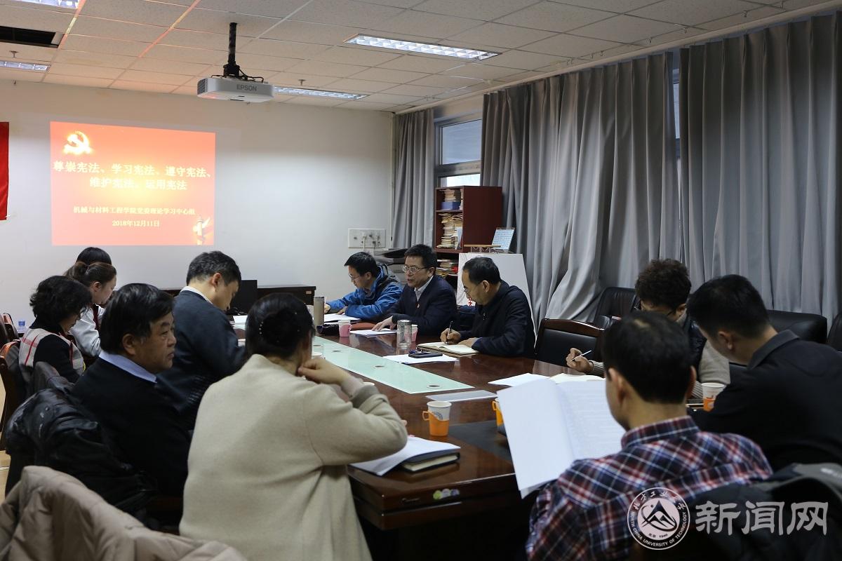 12月11日下午,机械与材料工程学院党委理论学习中心组在博闻楼203室召开学习会,集体学习以“尊崇宪法、学习宪法、遵守宪法、维护宪法、运用宪法”为主题的宪法精神。学院班子成员、党委委员、系/中心主任、工会负责同志参加了学习。学习会由院党委书记王文革主持。