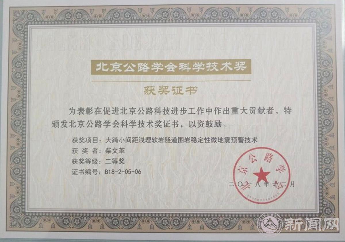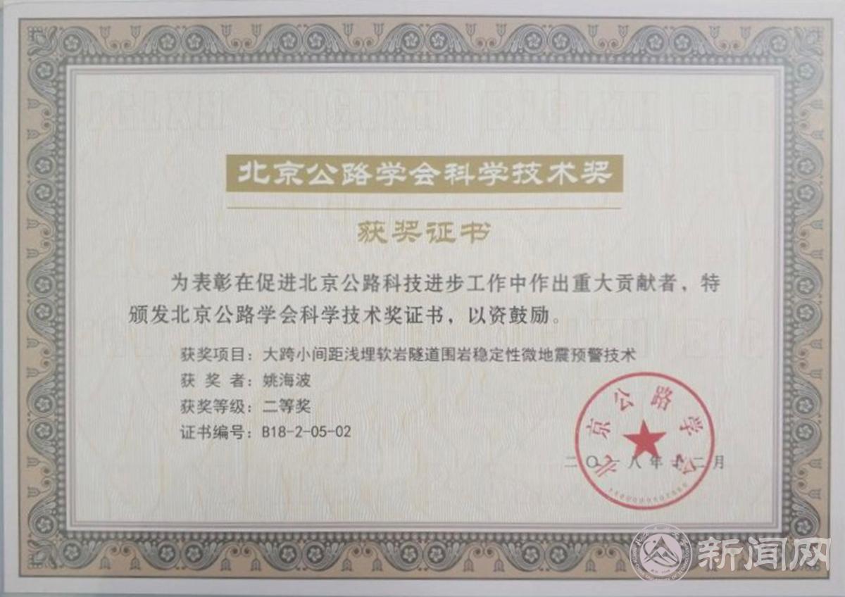 日前,从北京公路学会获悉,beat365官网土木工程学院姚海波教授带领的科研团队获得2018年北京公路学会科学技术奖二等奖。