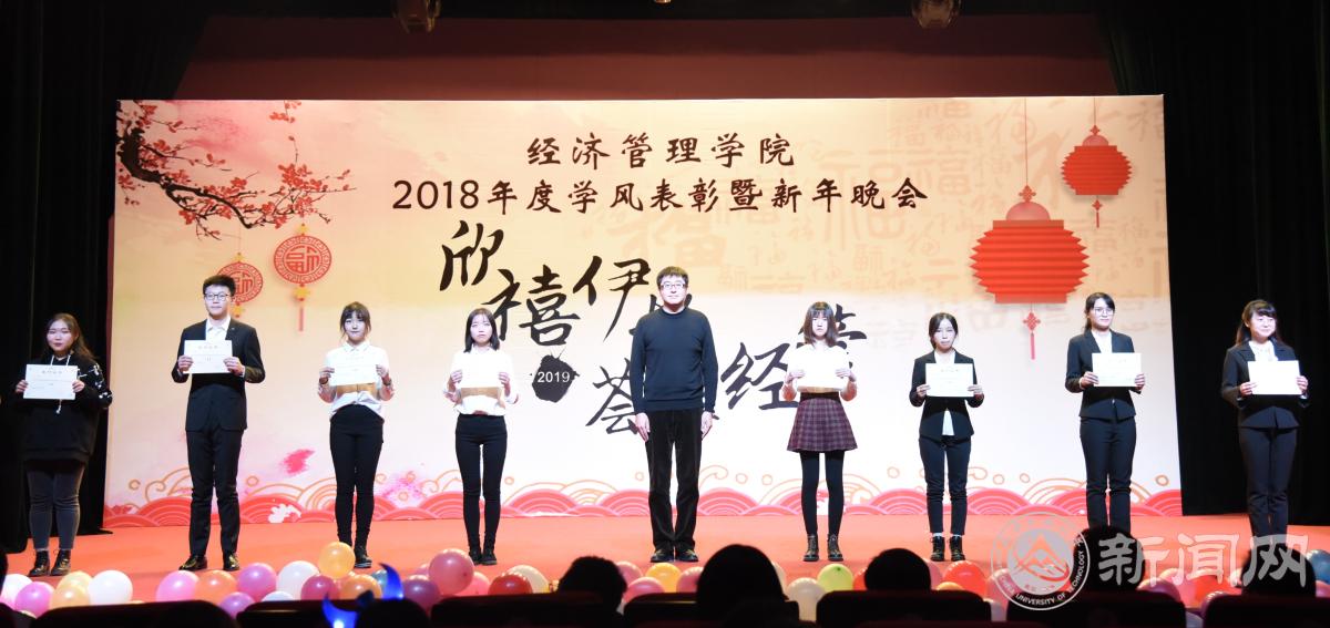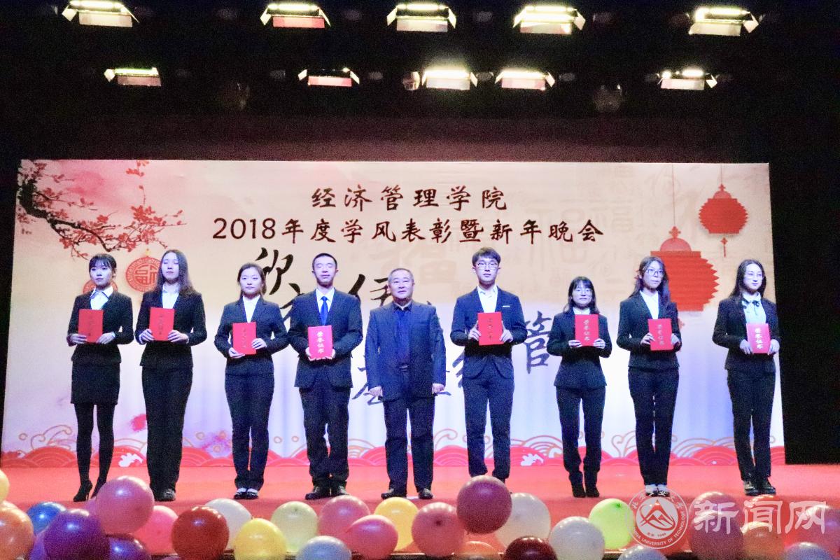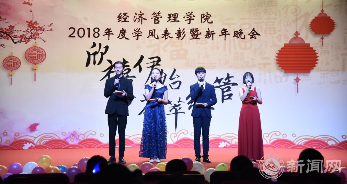 12月18日晚,经济管理学院在图书馆报告厅举办“欣禧伊始 荟萃经管”2018年度学风表彰暨新年晚会。学生工作部部长高国伟、校团委书记何有华、学生工作部副部长赵帅、经济管理学院全体领导班子成员、各系主任、班导师、辅导员及600余名同学共同参加了本次晚会。