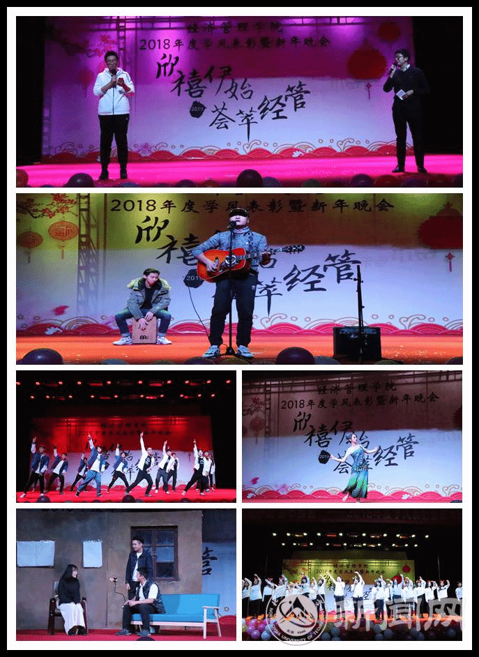 此次晚会围绕着同学们2018年的三个关键词——“坚持、转换、梦想”展开,大家通过自编自导自演的节目,回顾了2018年的过往,同时也对2019年充满了期许和展望。学院辅导员邓鑫、王昕宇以及励学楼管理员李海涛的献唱,更是将整场晚会推向了高潮,展现出了学院师生同乐贺新年的温馨画面。歌曲、舞蹈、小品等节目,也充分展现了经管人勤奋创新、阳光向上、敬业乐群、善于表达的气质品质。