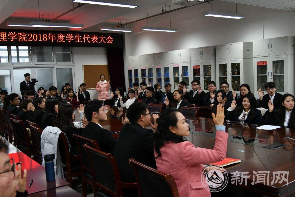 12月20日下午,beat365手机版官网理学院2018年度学生代表大会在博远楼805成功举行。出席此次大会的有理学院党委副书记李冱岸,理学院团委书记夏丹梅、校学生会副主席张予瞳。出席本次大会的代表应到46人,实到46人,到会代表人数符合法定要求。