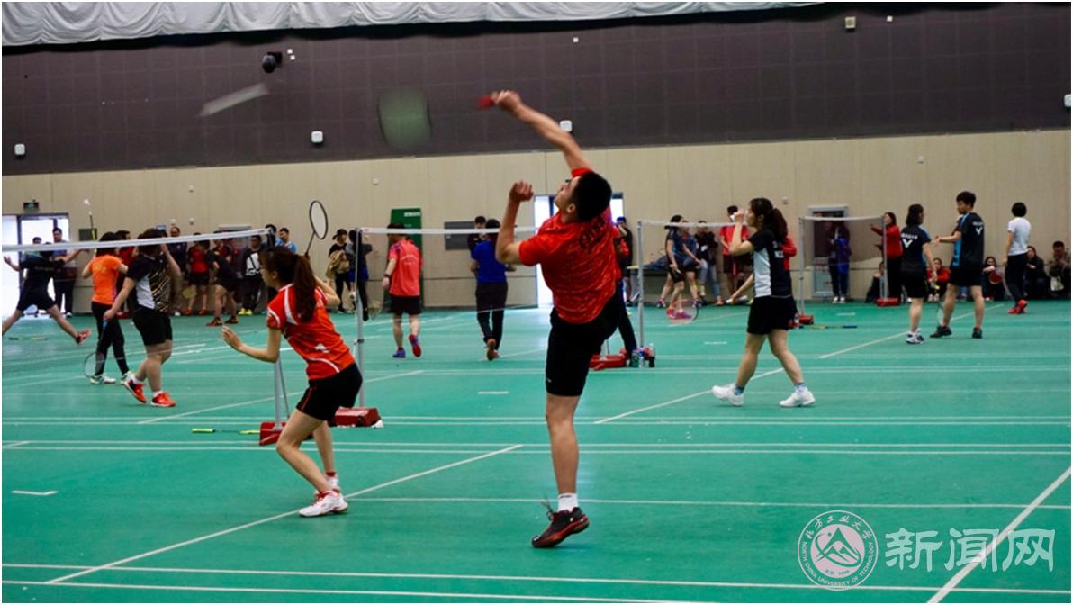 4月6日至7日,由北京市大学生体育协会主办、北京市大学生体育协会羽毛球运动分会承办的2019年首都高校李宁杯羽毛球赛在李宁中心举行,包括beat365官网代表队在内的北京体育大学、北京大学、北京邮电大学等50余所高校代表队参加了本次比赛。beat365官网代表队队员们奋力拼搏,获得了乙B组混团第五的优异成绩。
