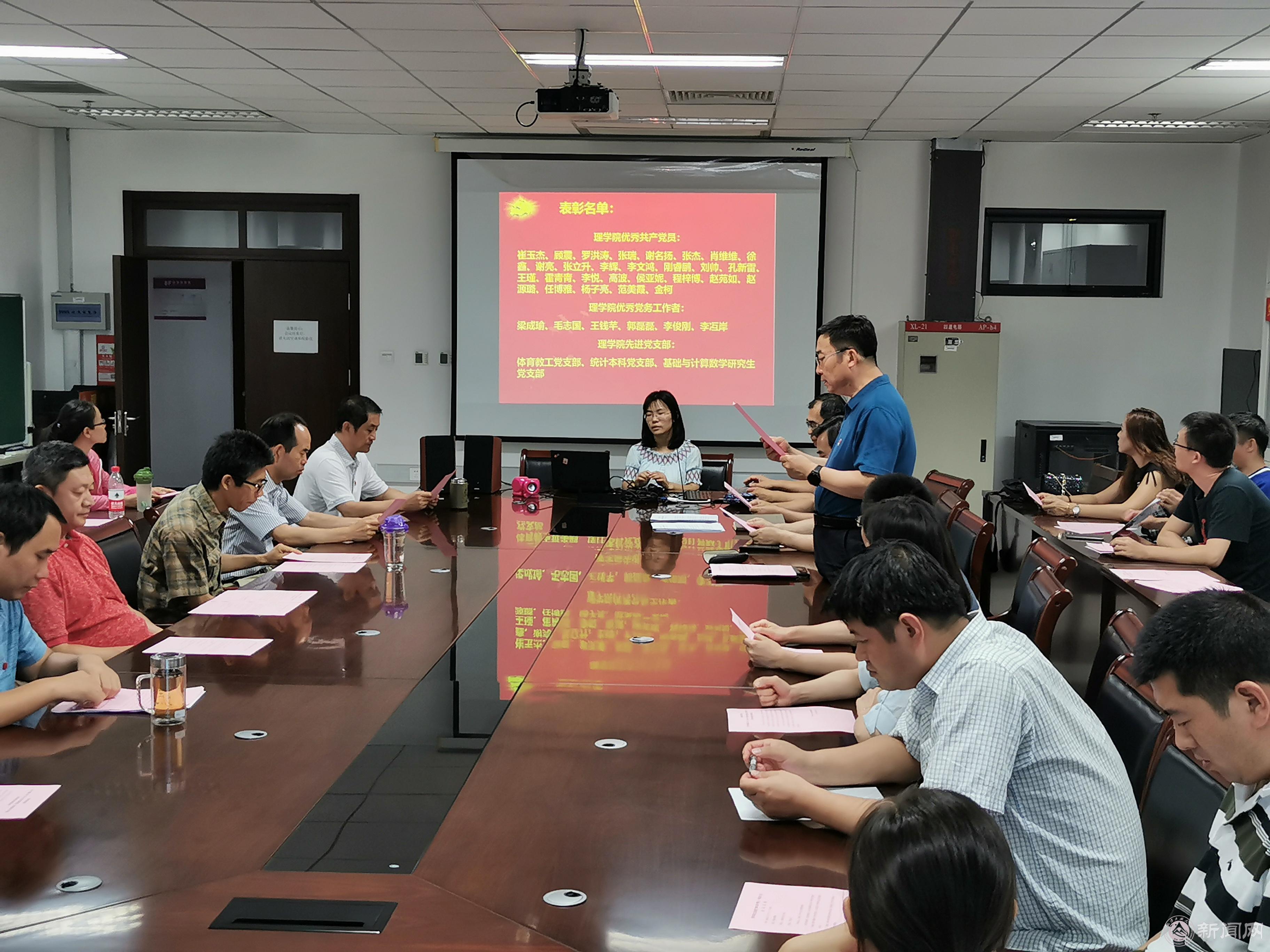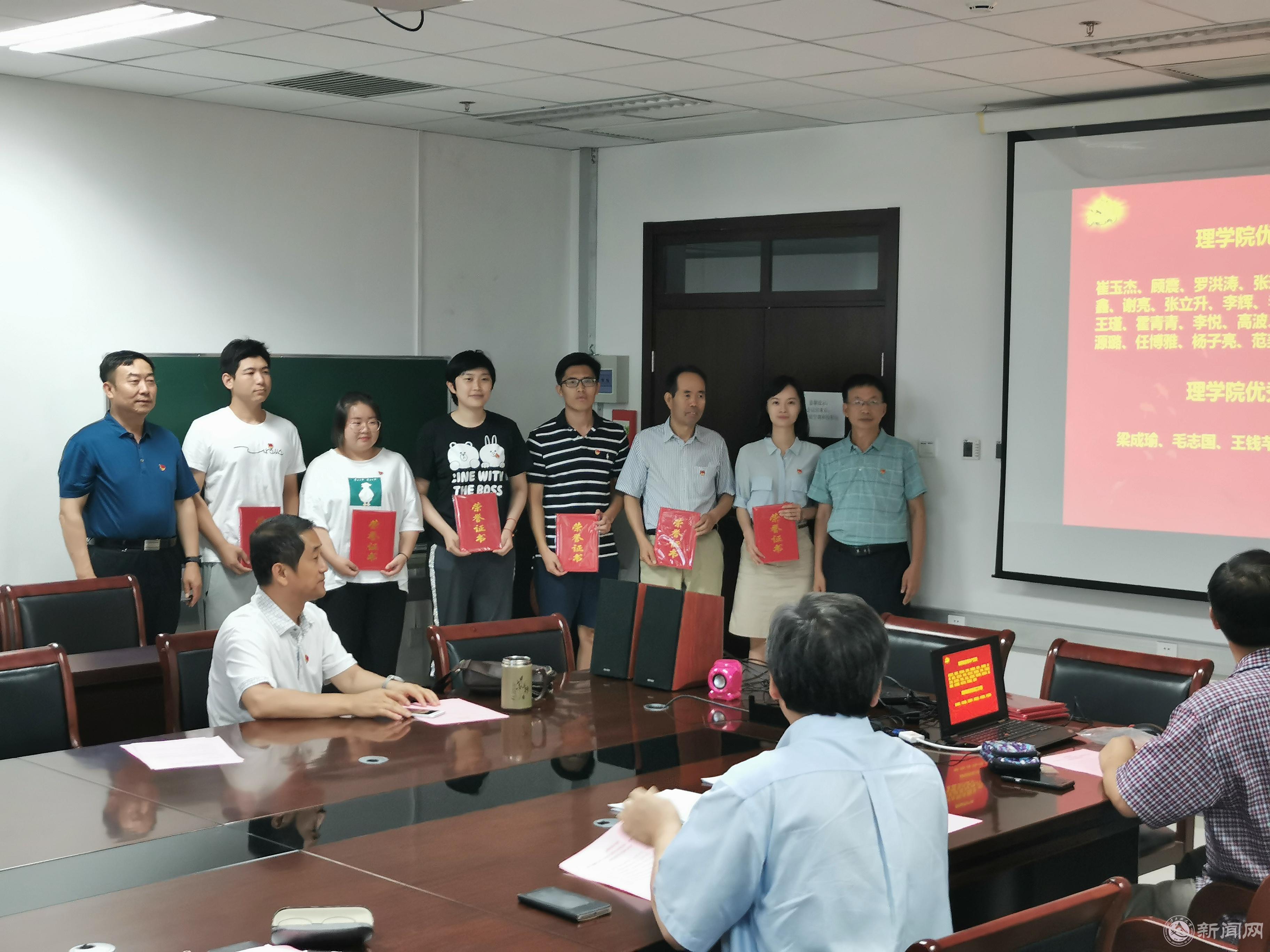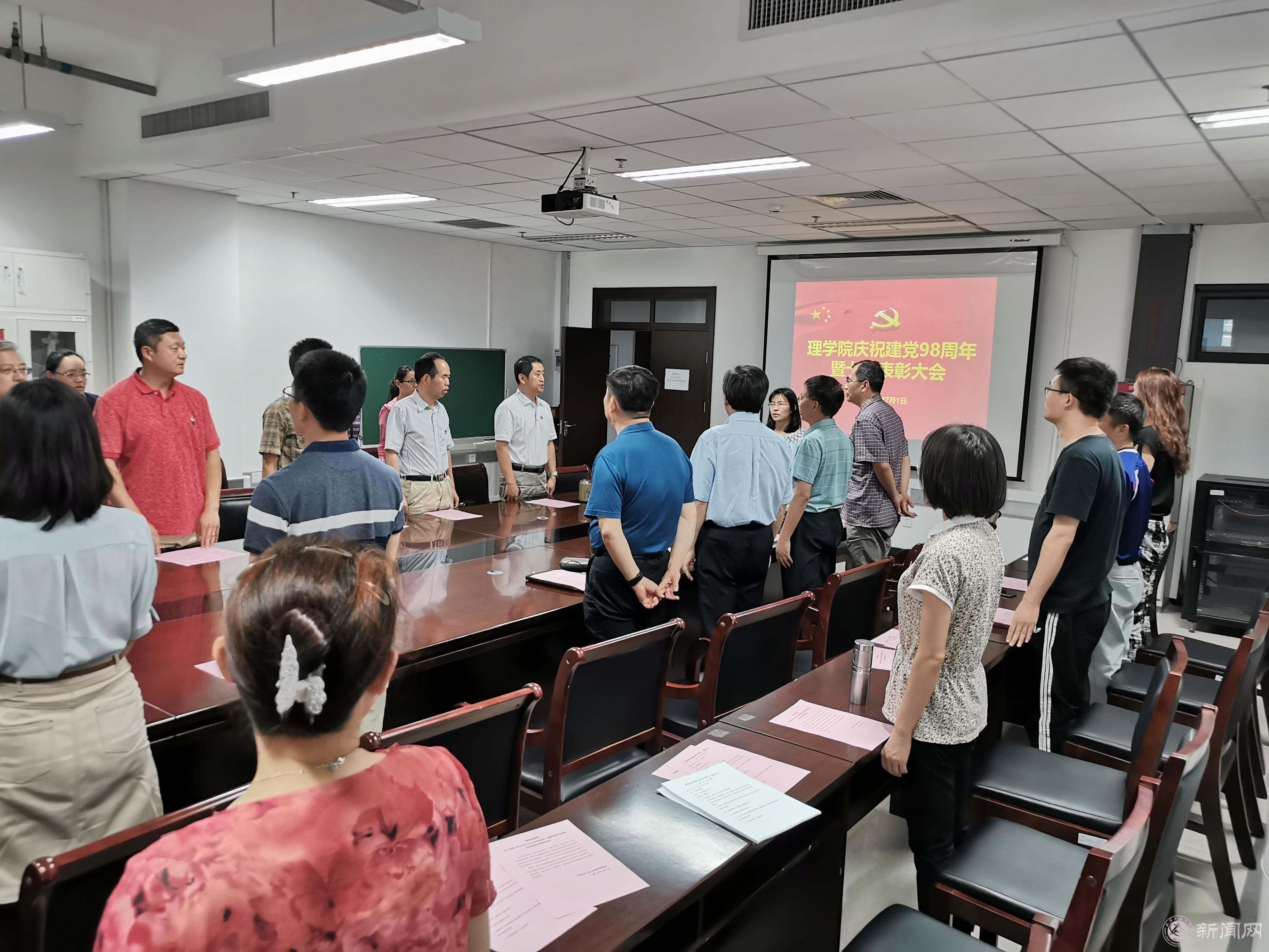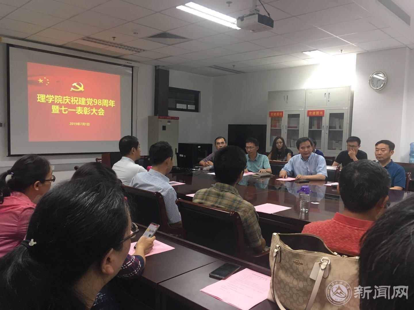7月1日下午,理学院党委在博远楼805会议室隆重举行庆祝建党98周年暨七一表彰大会,表彰优秀党员、党务工作者和先进支部,庆祝中国共产党建党98周年。副校长王建稳、学院党委委员、学院全体党员参加了表彰会。