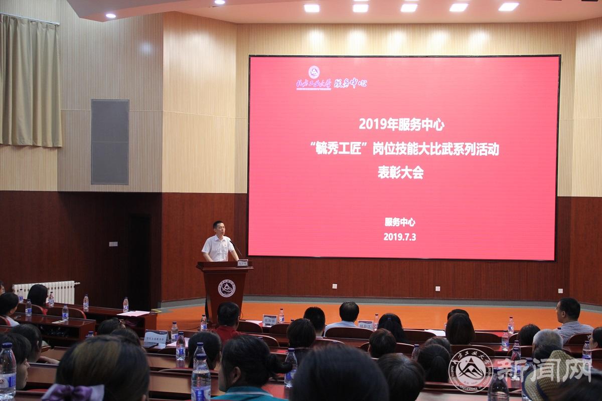 7月3日下午,服务中心在文化会堂召开了2019年“毓秀工匠”岗位技能大比武系列活动表彰会。后勤基建处、服务中心领导,部门正、副经理及班组长、服务中心部分职工等230余人参加了会议。会议由服务中心党委书记张加强主持。
