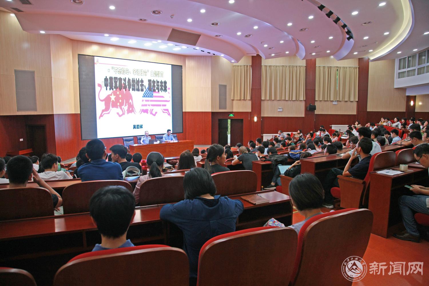 9月19日下午,学校“毓秀青年”习近平新时代中国特色社会主义思想培训班2019年班次在文化会堂组织开展了本学期第一次授课。适值新中国成立70周年来临之际,为了激发青年教师的爱国情、强国志、报国行,此次培训专门邀请原国防大学教授吴国辉做“中美军事斗争的过去、现在和未来”主题报告。“毓秀青年”培训班全体学员及部分学生等240余人参加了报告。报告由宣传部副部长尉峰主持。