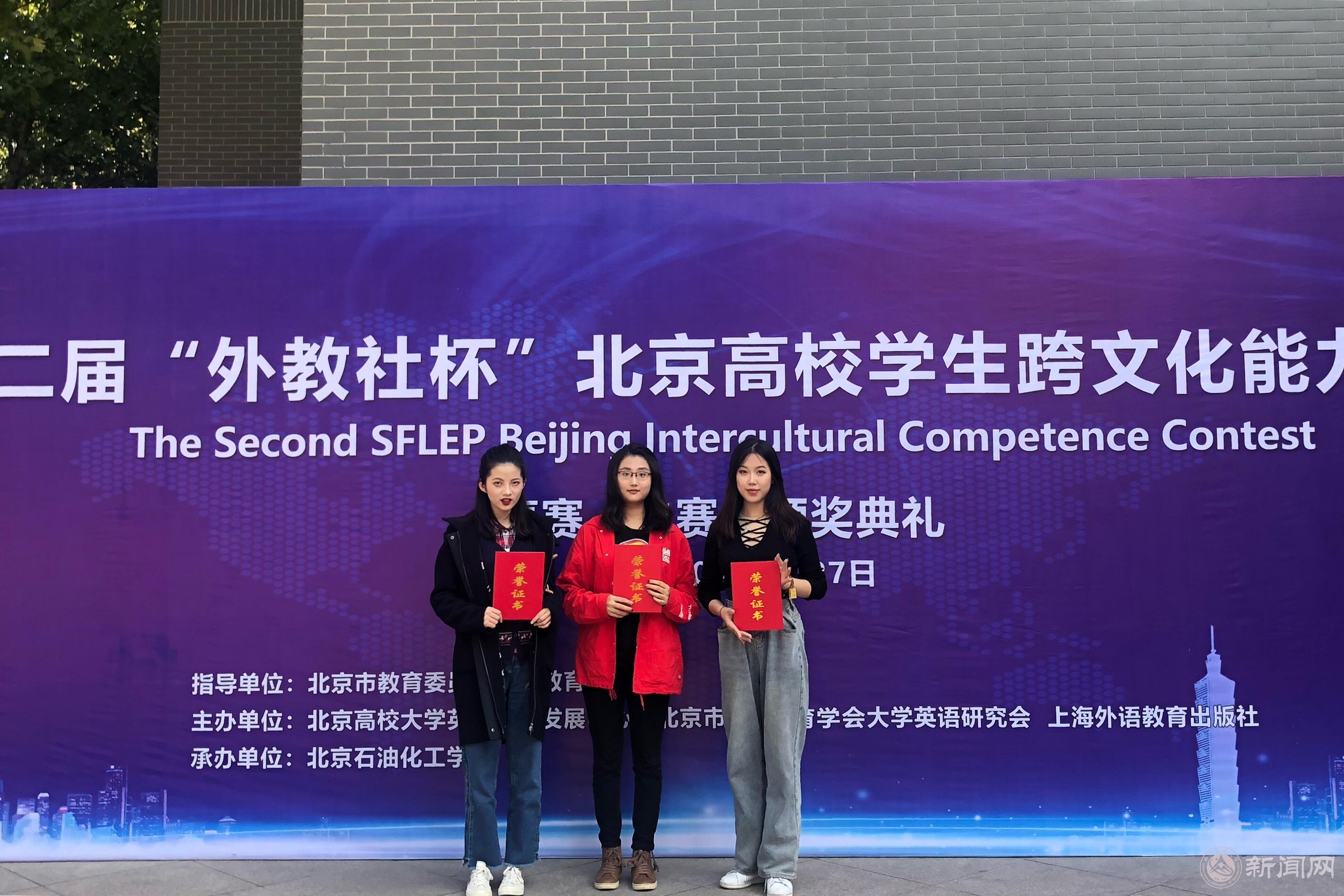 由北京高校大学英语教育发展中心、北京市高等教育学会大学英语研究会和上海外语教育出版社主办的第二届“外教社”杯北京高校学生跨文化能力大赛于10月26-27日在北京石油化工学院举行,来自包括中国人民大学、对外经济贸易大学、北京邮电大学等在内的34所北京高校参与了此次大赛。beat365官网文法学院英语17-2蔡正杨、英语17-1洪卉杉和建筑学院的建学18-2沈佳等3名同学,以扎实的语言能力和出色的演讲展现力,打动评委并取得三等奖的好成绩。指导教师胡欣悦获得优秀指导教师奖。