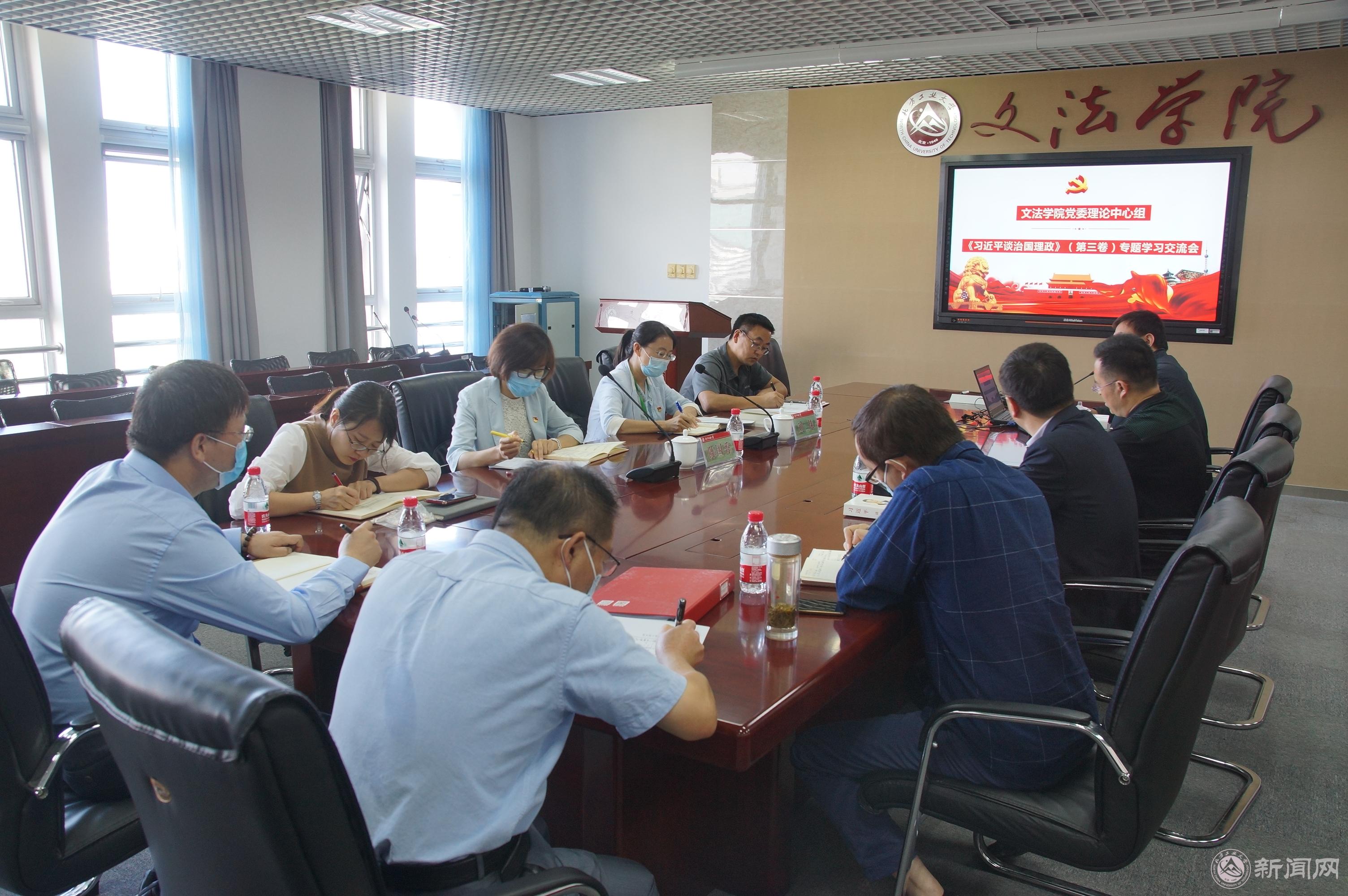 9月24日下午,文法学院党委理论学习中心组在学院学术报告厅专题学习《习近平谈治国理政》第三卷,学院领导班子成员、党委委员、各党支部书记、系(中心)主任和辅导员参加了专题学习。学院院长刘泽军做了主题报告,学习会由学院党委副书记刘祥坠主持。学校党委理论学习中心组巡听工作小组成员列席旁听。