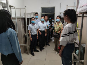 9月10日晚,学院领导班子带领辅导员、班导师分别走进悦斋、雅斋、德斋等100多间新生宿舍,与新生及面对面交谈,询问学生来校情况,嘱托新生要做好个人防疫,树立远大理想,刻苦努力学习,积极参加活动。