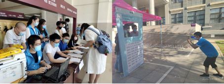 9月9日-10日,学院组建迎新志愿者队伍轮班值守,严格进行新生入学健康筛查,如健康码、核酸检测报告检查等,同时在报到现场准备口罩、消毒液等防疫物资,设立绿色通道、财务咨询等专门服务点,为迎新工作安全、有序开展保驾护航。学院还专门制作了“微信朋友圈”等纪念展板,为同学们留下入学伊始的珍贵纪念。
